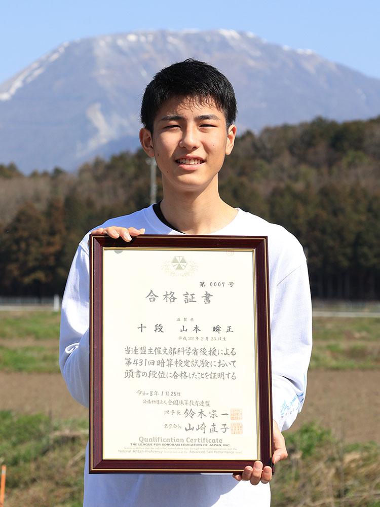 米原市大鹿の山本瞬正さん(16)=彦根東高1年=が、1月に実施された全国珠算教育連盟の暗算検定で最高位の十段に合格した。県内では7人目、米原市内では初の快挙となる。