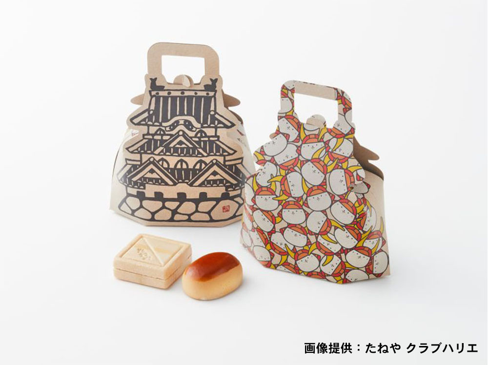 たねやの商品は、最中の「ふくみ」5個入りと、栗饅頭・最中の2個ずつの詰め合わせで、それぞれ、ひこにゃんの顔で埋め尽くされた箱型と手持ちができる型になっている。ふくみ天平のセットが1620円、栗饅頭・斗升最中のセットが1188円。14日までラコリーナ近江八幡で先行販売した後、4月1日から彦根美濠の舎やたねや・クラブハリエの公式オンラインショップで、4月1日から通常販売される。いずれも予約可。