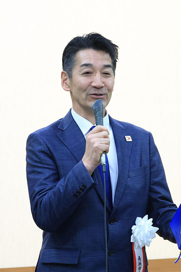 「今回の選挙は、前の流れに戻すのか、それとも難しい問題を乗り越えて明るい未来を目指すのかを問う戦いだ」と強調。「未来像がなく、既得権益にこだわり、現状を変えたくない。そういう人たちに長浜を任せるわけにはいかない」と訴えた。
