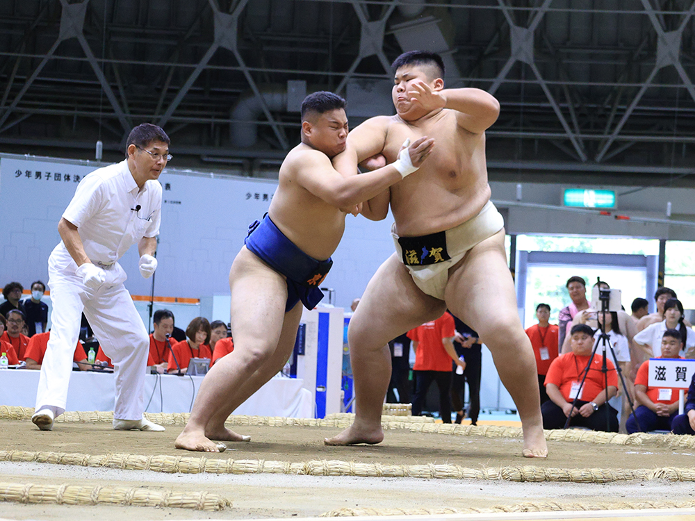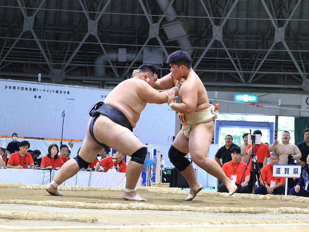 少年男子の部は長浜市内の高校生3人を含む5人が出場。団体戦は予選を突破できなかったものの、長浜北星高校2年の三橋昇也選手が個人成績で3戦全勝し、決勝トーナメントに進出し、開催県の意地を見せた。決勝トーナメントでは初戦を突き落としで勝利。2回戦は3位入賞した鹿児島代表の選手に押し出しで敗れ、入賞はならなかった。三橋選手は「インターハイではボロ負けした。その悔しさをぶつけてやろうという気持ちで大会に臨んだ。団体戦の結果は悔しいが、個人で決勝に出られて良かった」と話した。