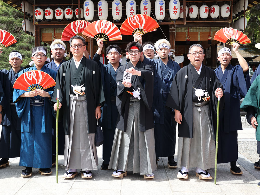 式では、各山の若衆から選ばれた「籤取り人」が赤鉢巻を締めて神前に並び、背後の若衆が扇子を手に「ヨイサー、ヨイサー」と囃し立て、熱気に包まれた。
