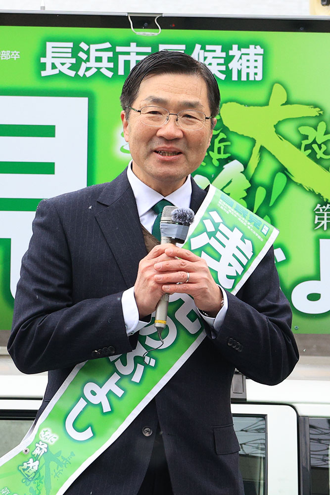 このうち医療を巡っては、3病院の再編問題で市内が「二分した」と指摘し、「病院はあって当たり前だが、そこで働く医療従事者は命を懸けて市民を支えてきた」と強調。新型コロナウイルス禍で尽力した医師や医療関係者への敬意を示し、「長浜病院も日赤もセフィロト病院も湖北病院も、しっかりと長浜市が支え、市民、県民の命と健康を守る」と訴えた。