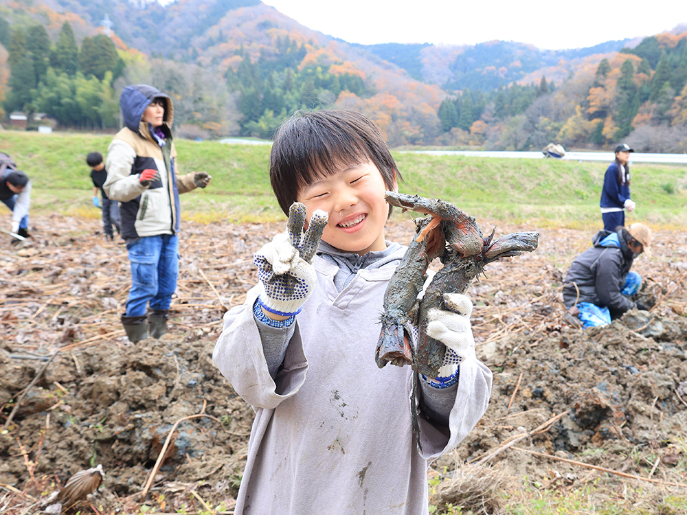 蓮根ほり大会は初めての企画で、同法人の川村美津子理事長は「『レンコンは食べられるのか?』とよく聞かれ、関心の高さを感じていた。シーズンオフにどうお客様を呼ぶかも課題だった。何より土の上で子どもたちが思いきり遊ぶ体験をしてほしかった」と話す。