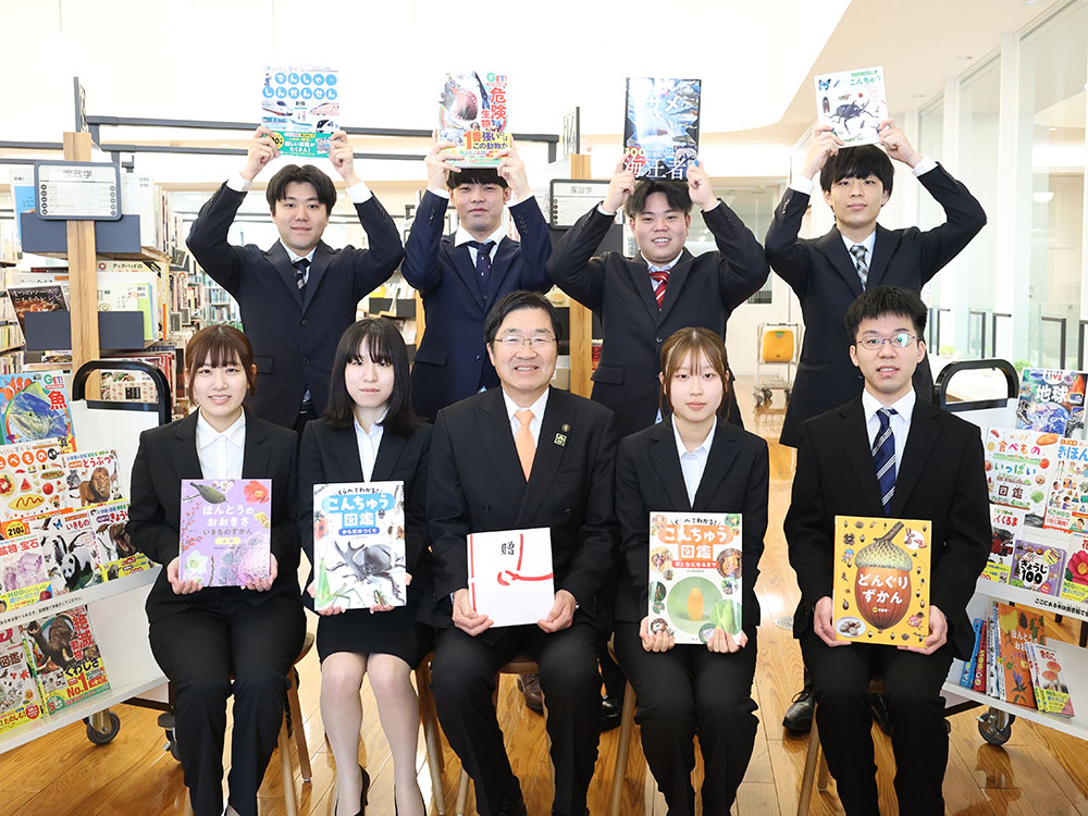 浅見市長は「図鑑は子どもたちの好奇心や探究心を育むもの」と歓迎し、「息抜きをしたいときは図書館に足を運んでほしい」と呼びかけた。