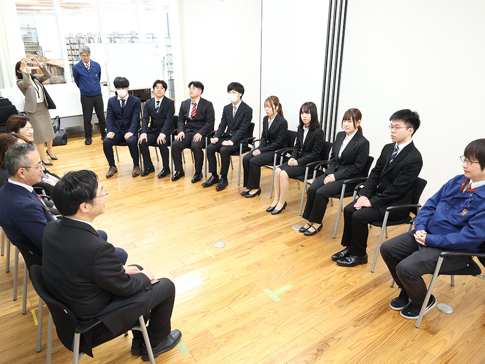 贈呈式後には浅見市長を交えた座談会も開かれ、新入社員らは地域に根ざした企業の一員としての自覚を新たにし、それぞれが社会人としての決意を語った。