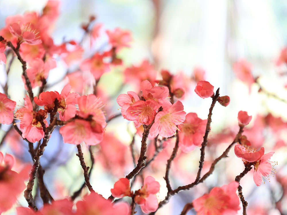 会期中の1月31日から3月1日までの土日・祝日は夜間ライトアップを実施。これに合わせてバー「盆梅酒庵 旅人 tabito」もオープンし、梅酒などのアルコールドリンクを提供する。