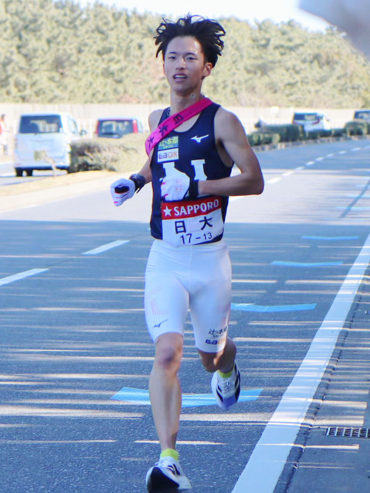 仲間との競い合いで着実に成長し、1万㍍で28分39秒39、ハーフマラソンで1時間2分18秒の自己ベストを持つ。今年は2月の神奈川マラソン(ハーフ)と3月の立川シティハーフマラソンで連続して表彰台に立ち、5月の全日本大学駅伝関東地区選考会ではチーム2番目のタイムをマーク。日本大学の3大会ぶり43回目となる本戦出場に貢献した。